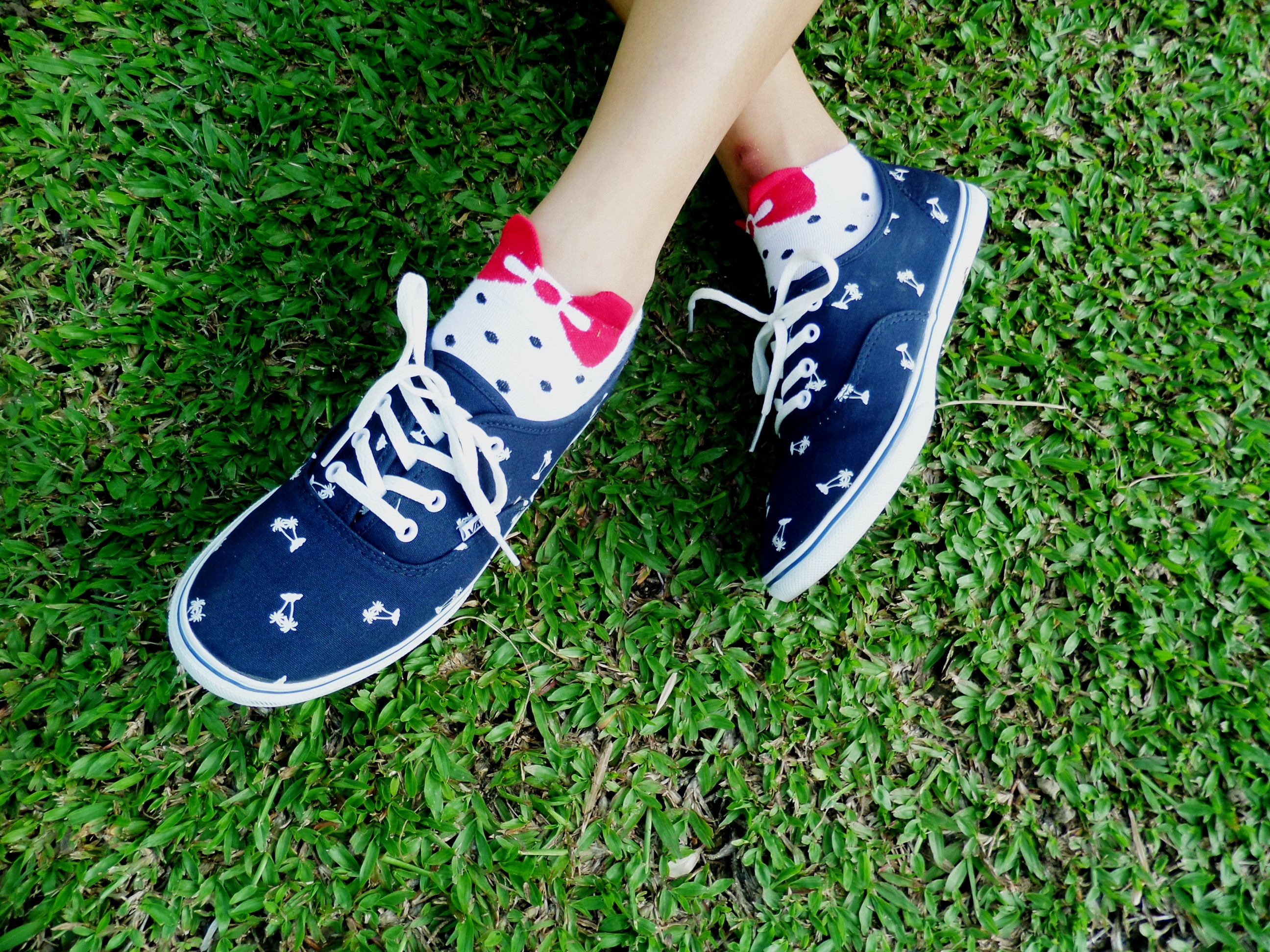Top : Checkered polo from Terranova | Shorts : Oniell (thrifted) | Bag : Black Leather sling/shoulder bag I got from Korea | Shoes : Vans I got from Taiwan | Socks : cute polka dots with red ribbon socks from Taiwan