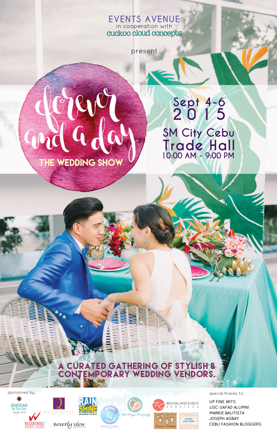 Running out of ideas for your wedding? or perhaps your debut? Well worry no more! Because on the 4th up to the 6th of September, Events Avenue in cooperation with Cuckoo Cloud Concepts present Forever and a Day : The Wedding Show. The event will be held from 10am to 9pm at the SM City Cebu Trade Hall.