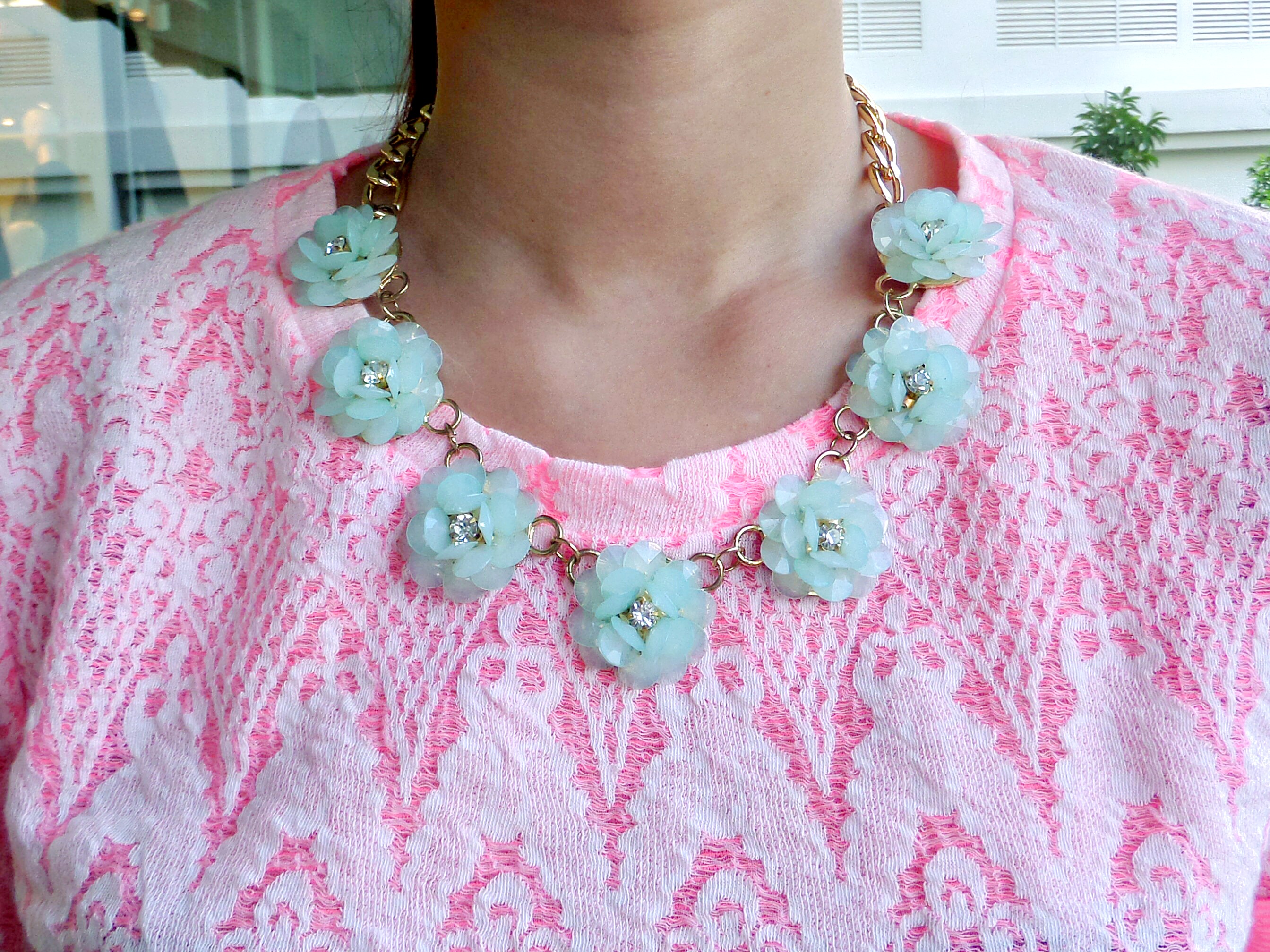 love how you accessorized your outfit. the mint green necklace and the neon pink shirt looks amazing together!
