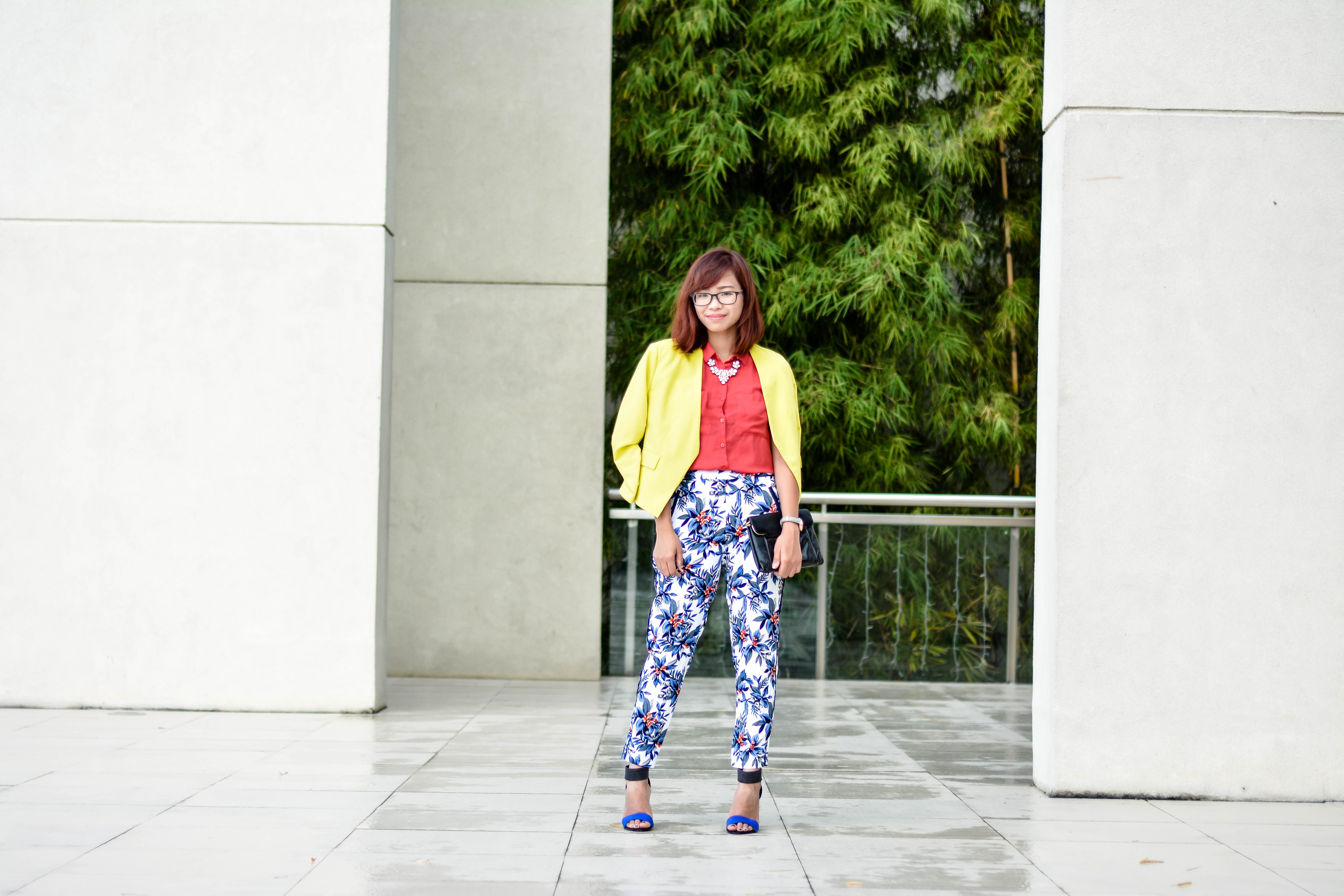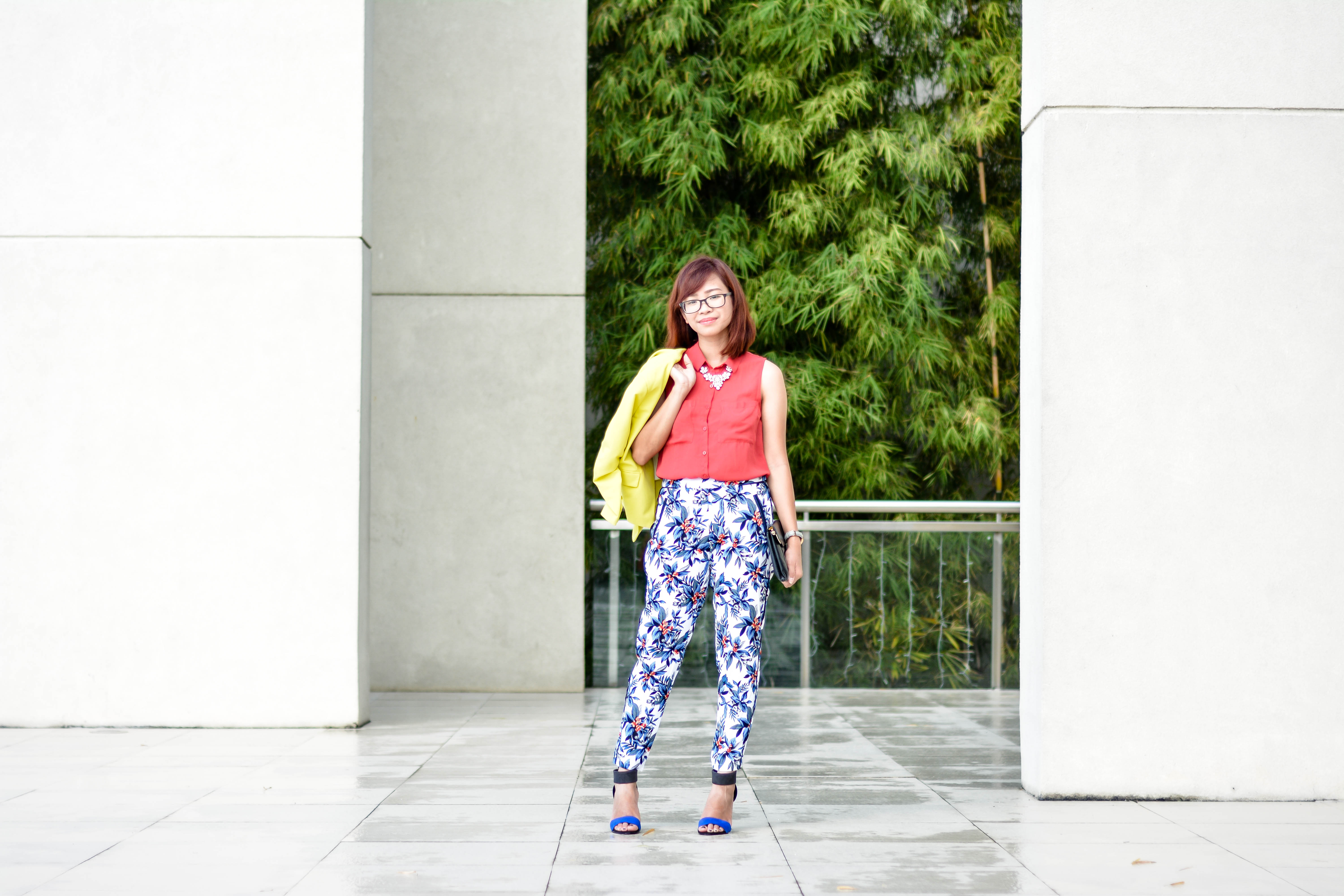 In this particular outfit, I played with plains and prints – with a pop of color! I wanted to style these pants I scored on SALE at ForMe. I like the fabric of these pants; it is very comfortable and i’m happy to add this piece in my wardrobe. The print is also one of the reasons why I got this. The print already stands out by itself, I could imagine this wearing with a plain white shirt or a tank top.